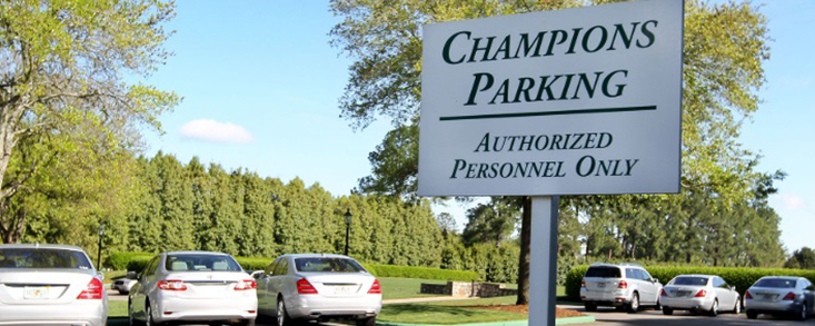 El club nunca publica cifras exactas sobre plazas de parking, pero el despliegue es enorme y está diseñado para absorber miles de vehículos diarios sin generar colapsos. Desde allí, un sistema de transporte interno fluye como un reloj suizo, moviendo a los patrons por caminos ocultos entre árboles y taludes. Las carpas de cortesía —auténticos oasis de sombra, restauración y descanso— forman parte esencial de la experiencia del Masters, donde la comodidad del espectador es casi tan sagrada como el silencio en los golpes decisivos.